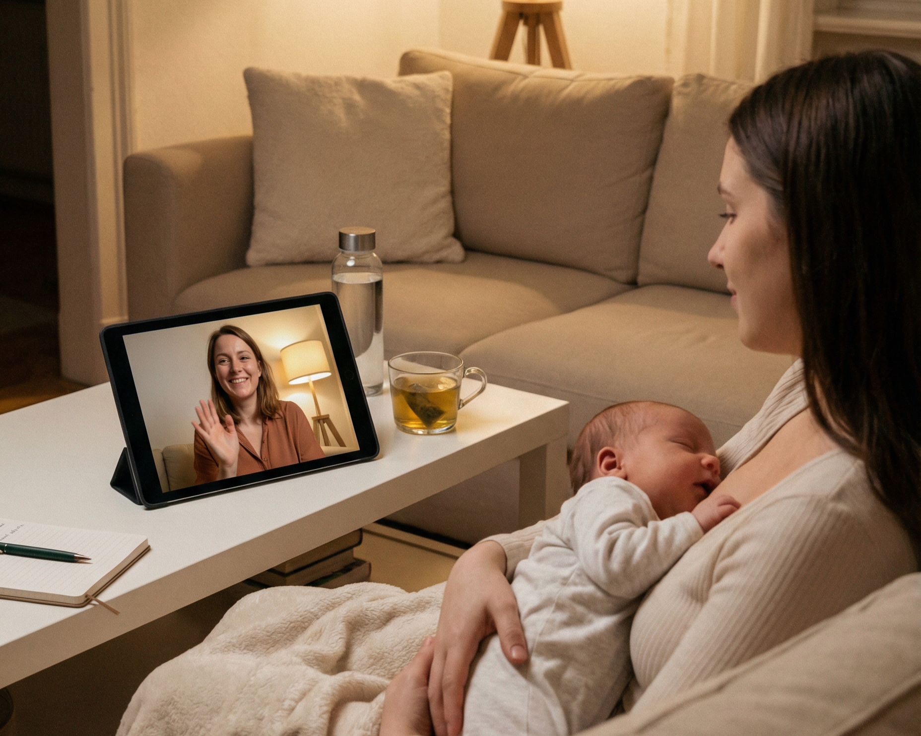 Get expert guidance and compassionate support from the comfort of your home. Our virtual care sessions offer personalized postpartum support tailored to your needs.